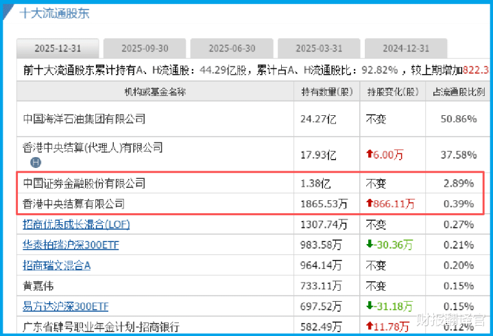 财官翻到股东名单。香港中央结算有限公司,加仓86.66%。